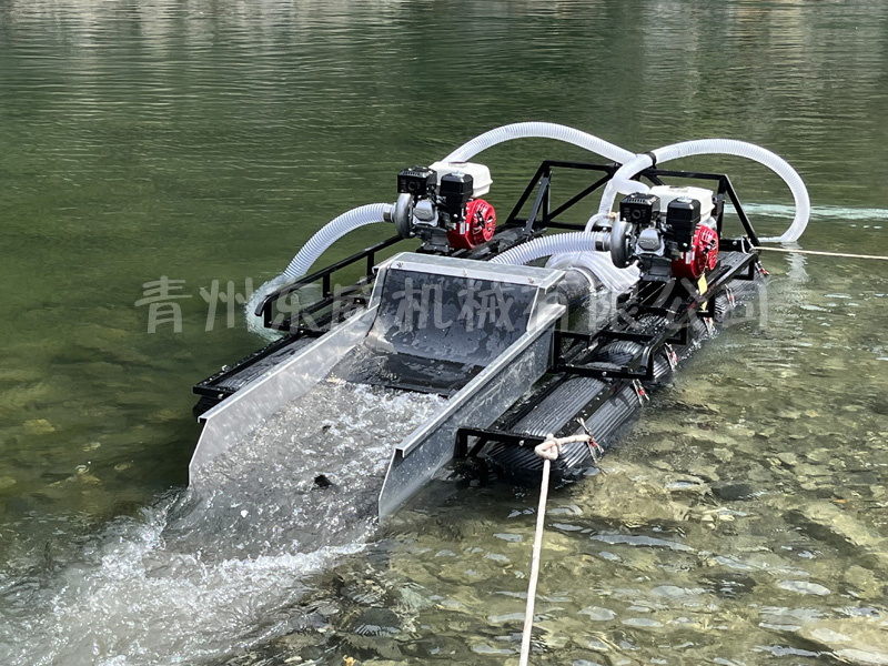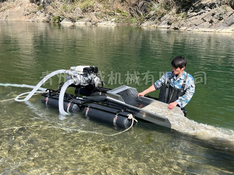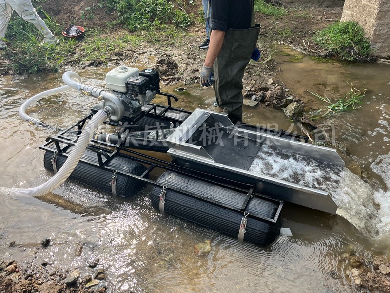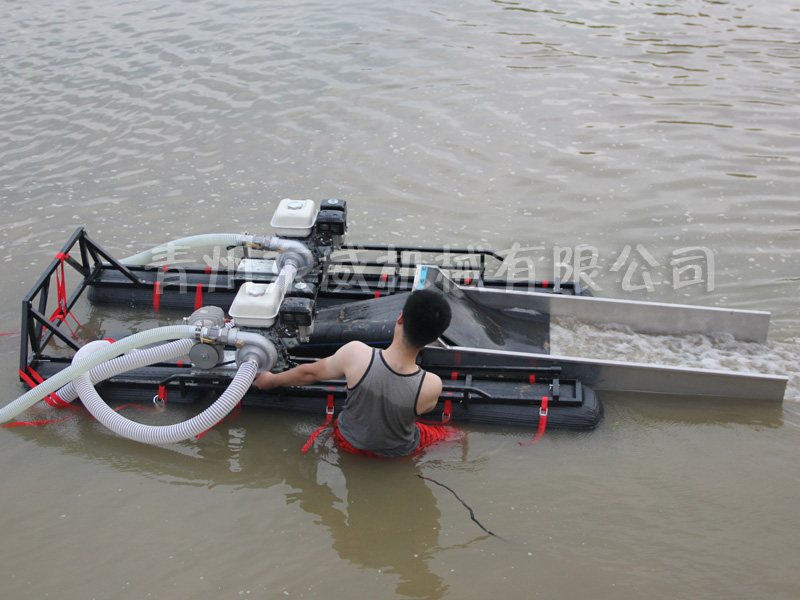 該設(shè)備抽沙系統(tǒng)采用新型結(jié)構(gòu),原料抽取過程中物料不流經(jīng)泵組,不用考慮泵和葉輪的磨損;沙金重選裝置為我公司專門研發(fā)的橡膠選金墊,沙金提取效率高,可對毛細金、片狀金進行回收;適用于中小型礦場、河道、小溪淘金、探礦作業(yè);