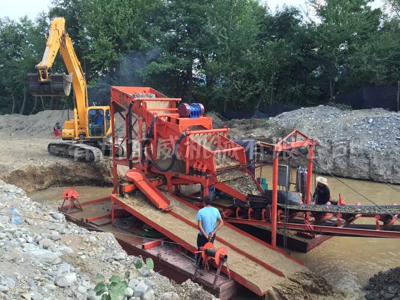 振動式選金機是一個緊湊型、可移動的整體結(jié)構(gòu)。頂部為篩條部分,可以將大塊物料隔除,同時物料落入二次篩分機構(gòu),充分篩分后,高壓力水將沙子沖入溜槽選金。該選金機結(jié)構(gòu)金緊湊、操作簡單、低運行成本。明顯比市場上其它選金設(shè)備有優(yōu)勢,無需豐富的選金經(jīng)驗即可操作。